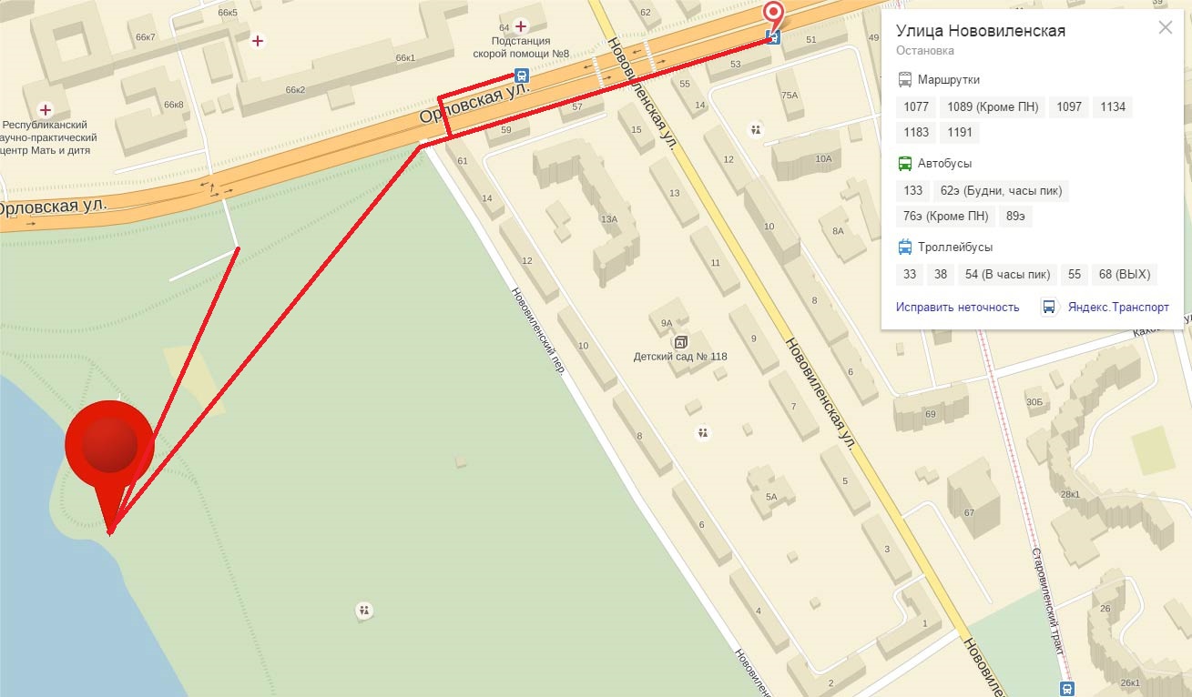 маршрутках: 1077, 1089, 1097, 1134, 1183, 1191 до остановки Нововиленская.