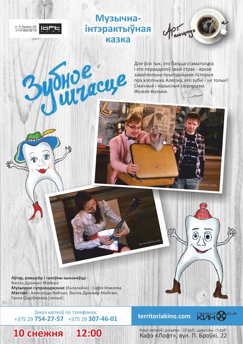 Калектыў творчай майстэрні «Тэрыторыя кiно» запрашае маленькiх гледачоў на прагляд казкi на беларуская мове «Зубное шчасце», усе сродкi ад якого пойдуць на лячэнне пяцiгадовай Влады Малашка.