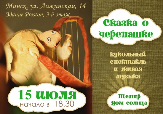 Театр кукол Дом Солнца приглашает на творческую кукольно-музыкальную встречу с обаятельной черепашкой.