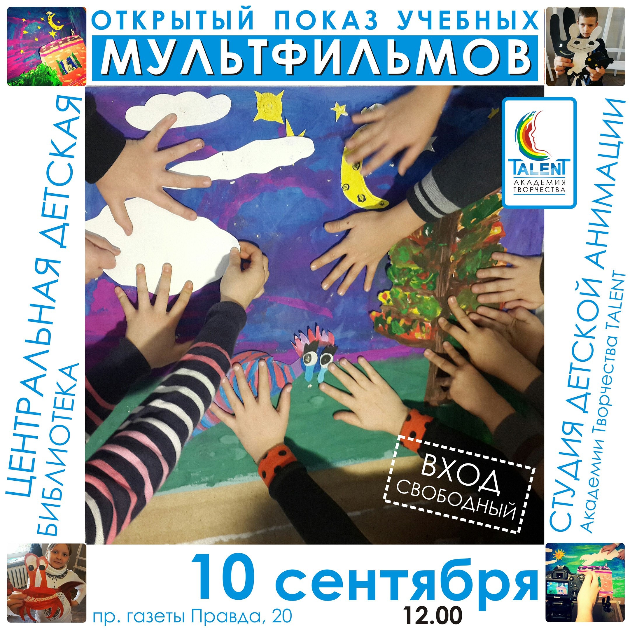 10 сентября в 12.00 в Центральной детской библиотеке состоится показ мультфильмов, созданных в студии детской анимации Академии Творчества TALENT.