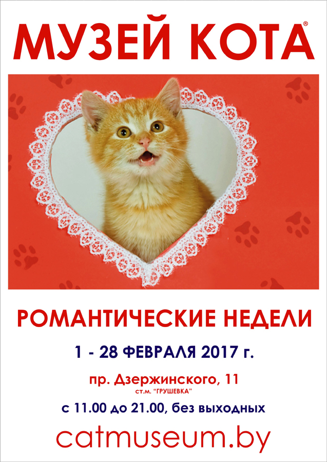 Выставка посвящена теме «Романтики и Любви». Музей Кота украшен сотнями алых сердец, а в одном из залов музея установлено Дерево Любви, на которое каждый посетитель может повязать ленточку и загадать желание.
