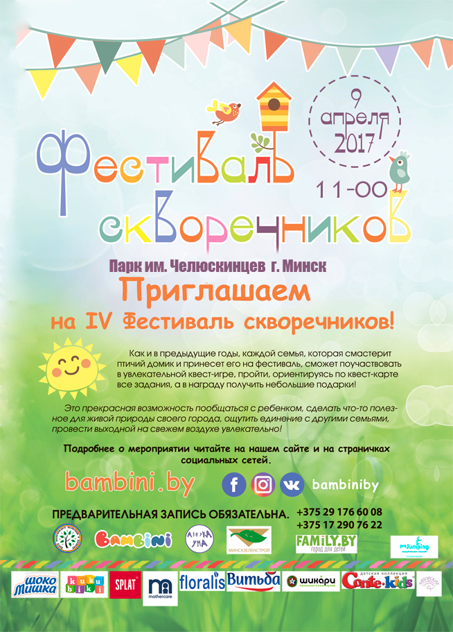 13.30 Общее фото всех гостей фестиваля с синичниками/скворечниками.