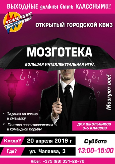 Авторский лагерь трансформационных приключений «Коллекция приключений» приглашает учеников 3-5 классов на «Мозготеку» - большой двухчасовой веселый интеллектуальный квиз.