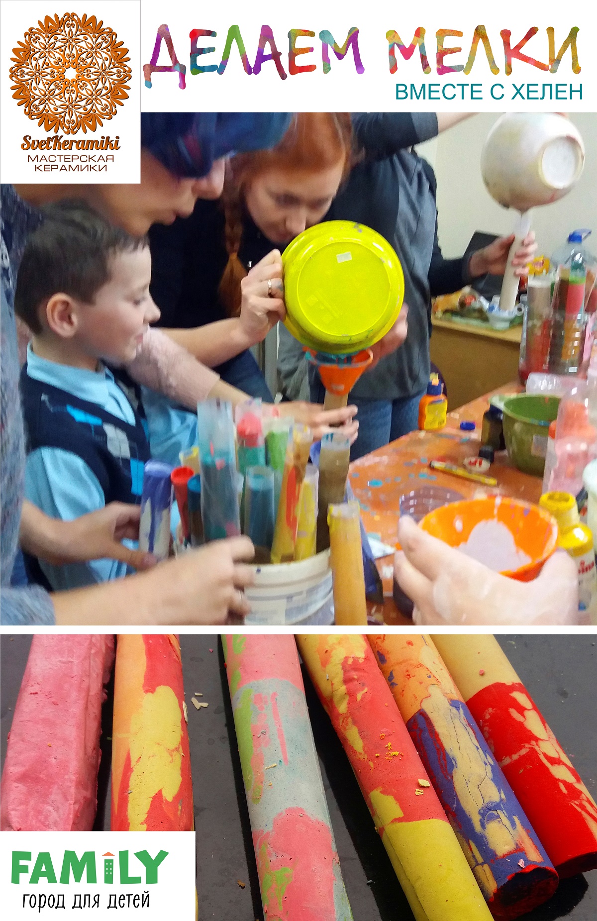 Участники будут отливать мелики из гипса - так что все пришедшие посмотрят и потрогают химическую реакцию с тепловыделением, получат экспириенс и уйдут с набором цветных мелков - с ними можно хоть пол-лета еще рисовать, пока асфальт не закончится.