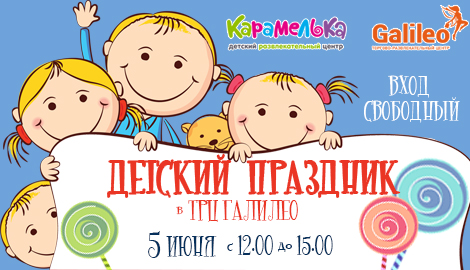 5 июня дети и взрослые приглашаются на праздник в честь Дня Защиты детей и открытия детского развлекательного центра «Карамелька» в ТРЦ Галилео!
