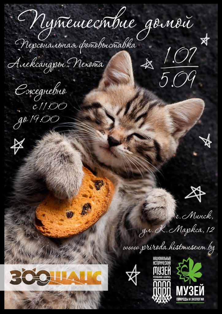 1 июля 2016 г. в Музее природы и экологии открывается персональная фотовыставка Александры Пехота «Путешествие домой». Выставка представляет собой серию фотографий кошек и котов, которые были бездомными, но им посчастливилось найти свой дом.