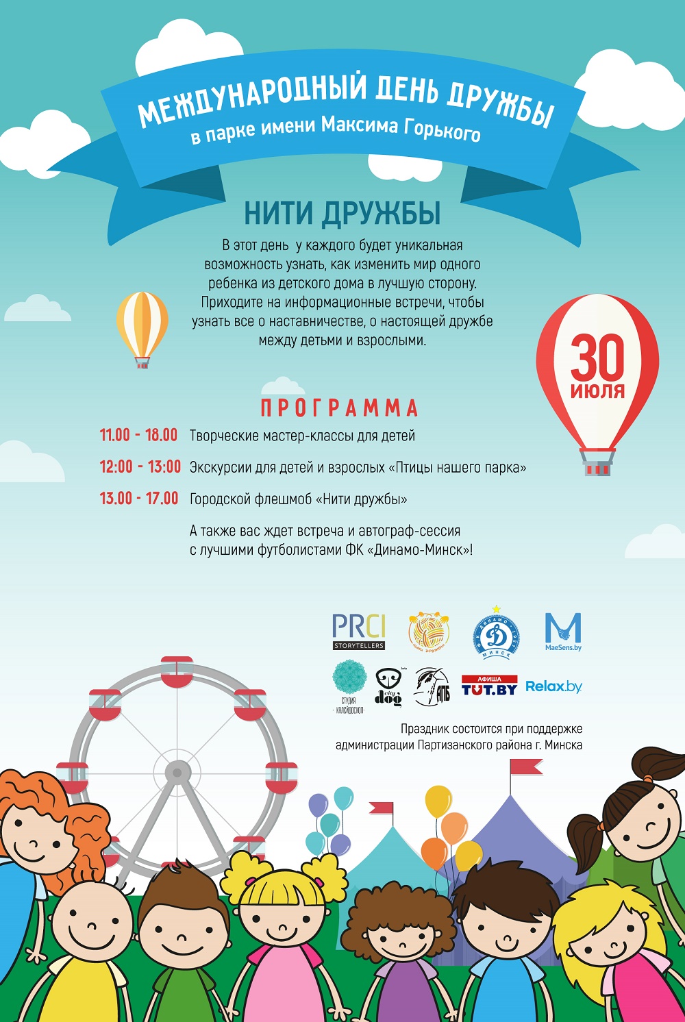 Дети и взрослые приглашаются на праздник "Международный день дружбы", который пройдет 30 июля в 11:00 в парке имени Максима Горького.
