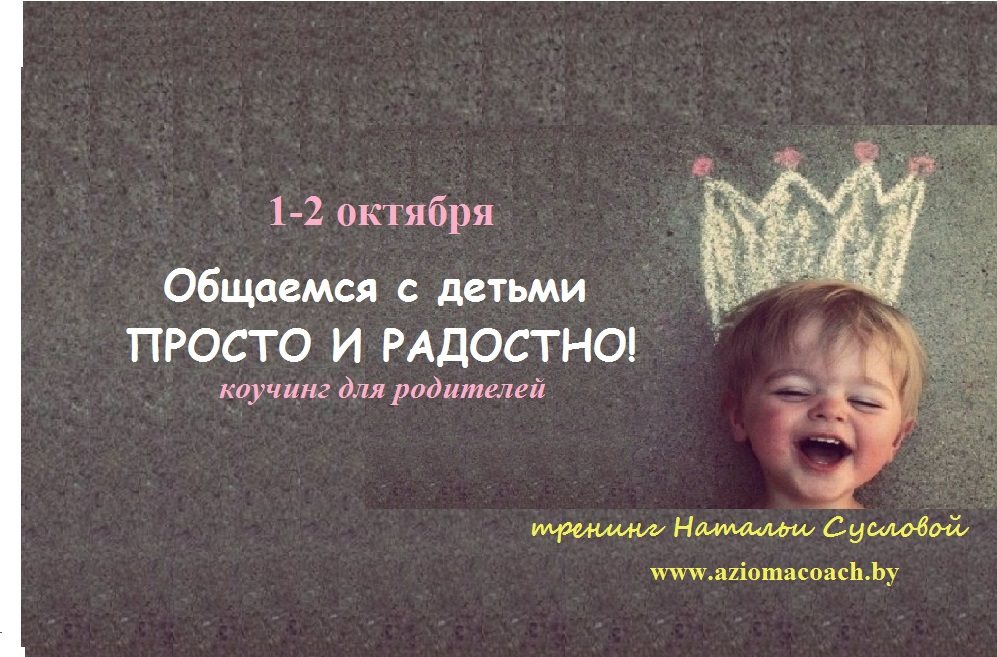 Уникальный авторский тренинг от ведущего тренера Международного Эриксоновского Университета коучинга Наталья Сусловой «Общаемся с детьми ПРОСТО и РАДОСТНО!» пройдет 1 и 2 октября.