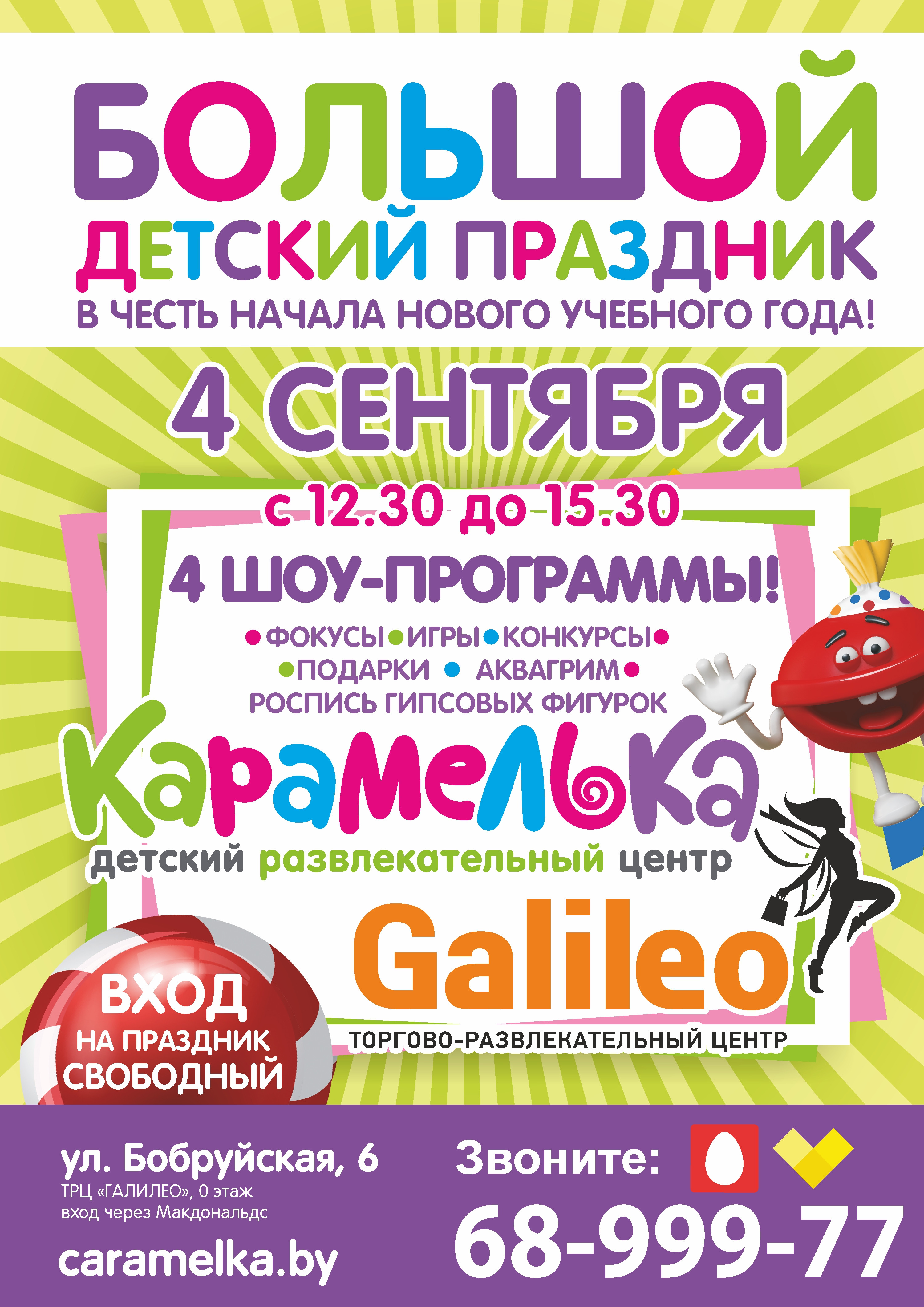 4 сентября состоится Большой детский праздник в развлекательном центре «Карамелька» Galileo.