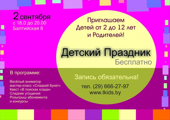 Творческий центр Ирины Босовик приглашает детей от 2 до 12 лет на «Детский праздник» в честь открытия детского творческого центра и праздника города!