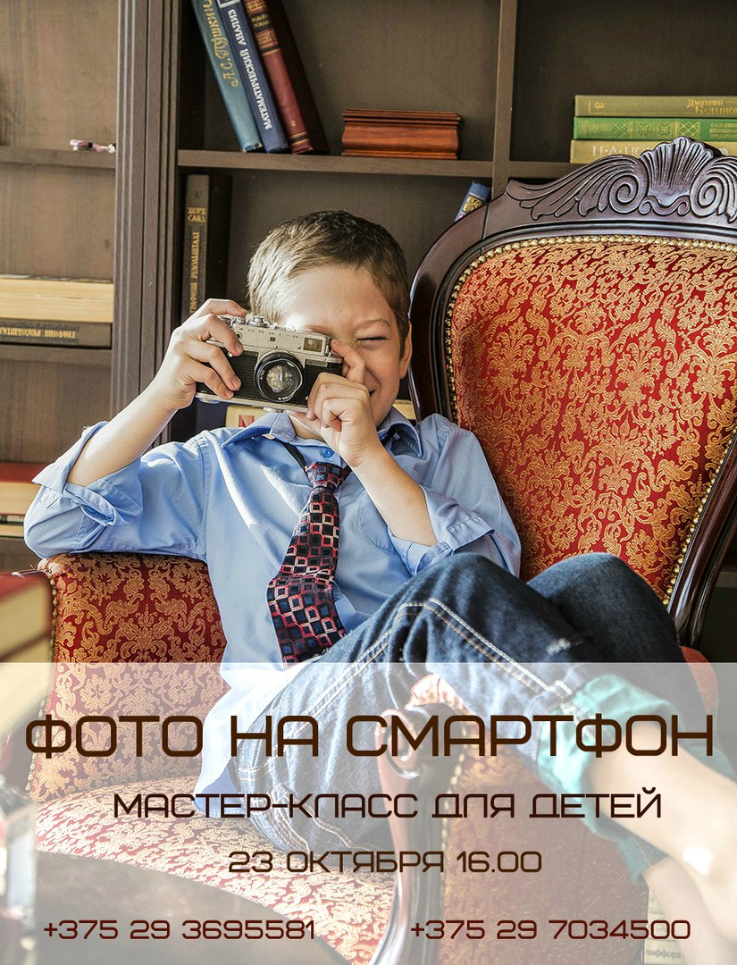 Специально для детей организаторы создали мастер-класс, где в доступной и понятной для ребенка форме изложены основные принципы фотосъемки как изобразительного искусства. Мастер-класс позволит освоить первые необходимые навыки для создания шедевров даже на телефон. Фотография может стать для детей новым увлекательным хобби.