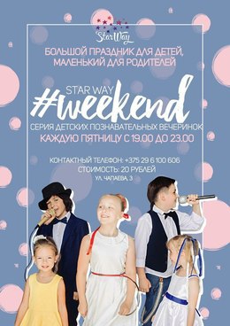ребенка? Детская мастерская шоу-бизнеса STARWAY нашла решение! Теперь каждую пятницу с 19.00 до 23.00 будет длится развлекательный и познавательный«#Weekend».