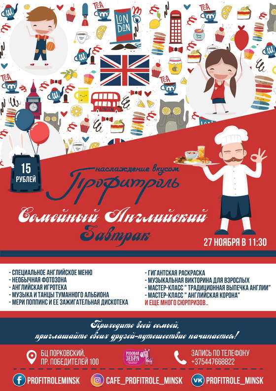 продолжать и продолжать. Кафе «Профитроль» предлагает все это попробовать, и воскресное утро провести немножко по-английски.