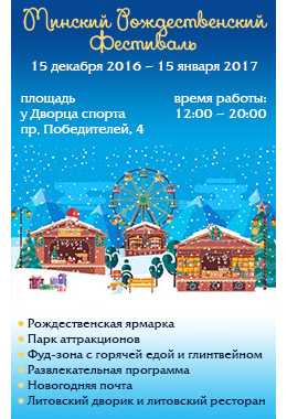 В Минске пройдет рождественский фестиваль с 15 декабря 2016 года по 15 января 2017 года с 15:00 до 21:00.