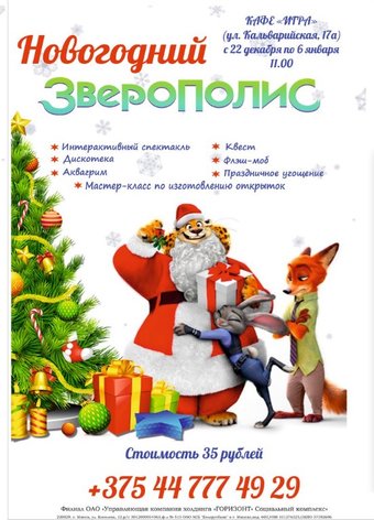 - Интерактив с детьми- каждый ребенок станет участником шоу и поможет персонажам Зверополиса вернуть Новый Год;