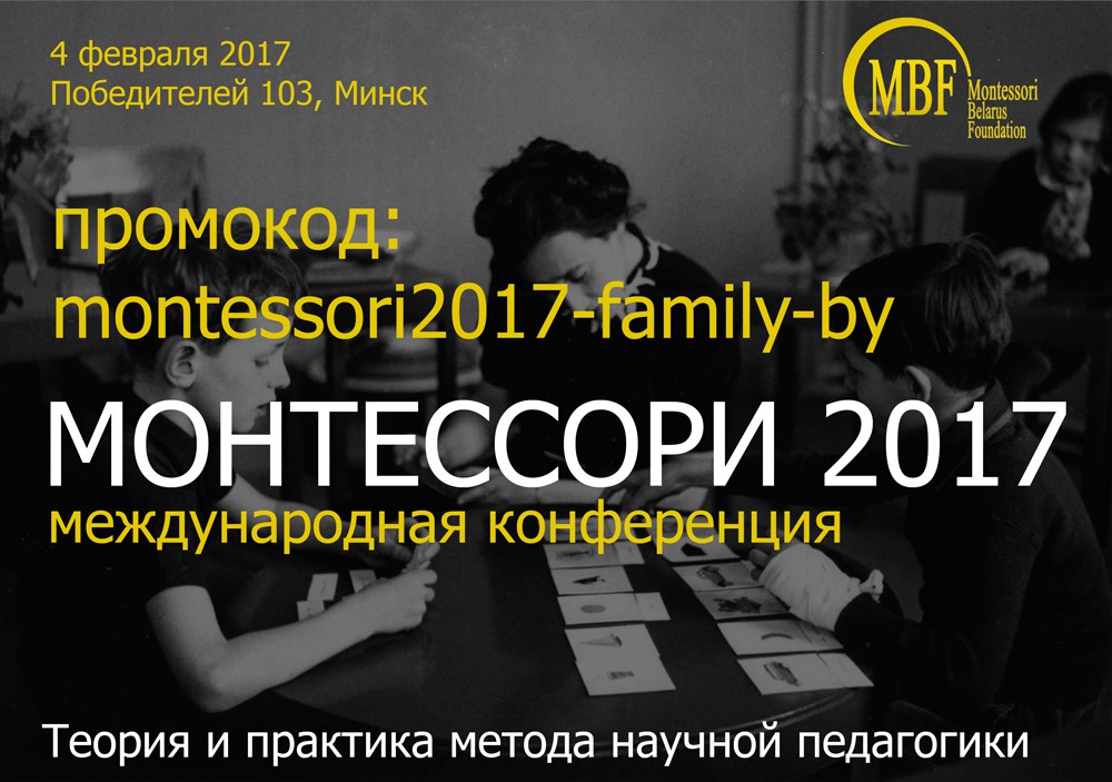 Зарегистрируйтесь на сайте mbf.by, укажите промокод montessori2017-family-by и получите 10% скидку на билет!