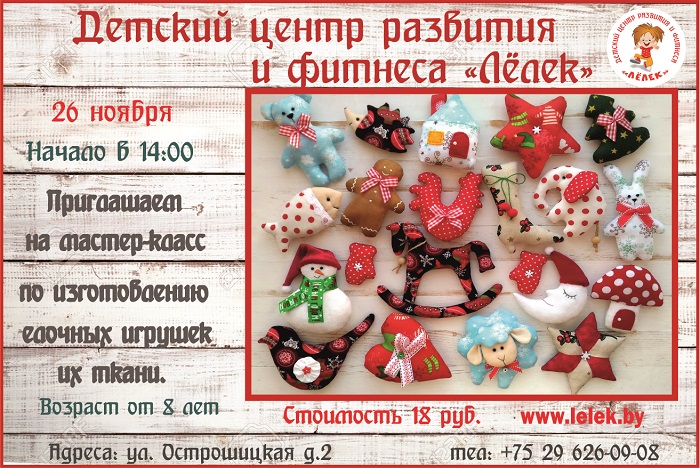 Детский центр «Лёлек» приглашает на мастер-класс по изготовлению новогодних игрушек из фетра и ткани.