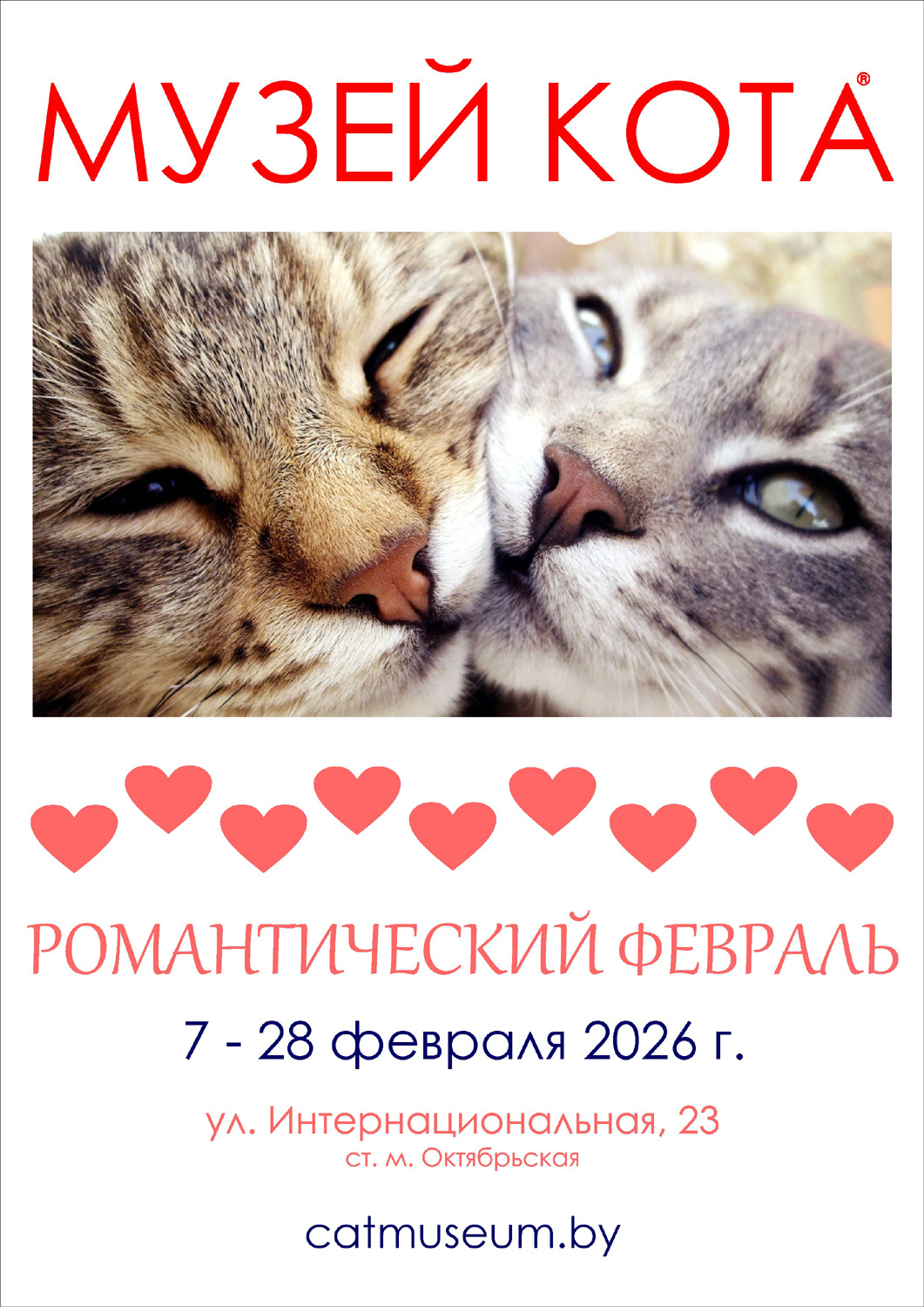 Музей Кота будет рад подарить посетителям романтическое настроение в феврале. В уютной обстановке Вас ждет увлекательное общение с дружелюбными котами и кошками, произведения искусства и другие развлечения на кошачью тематику.