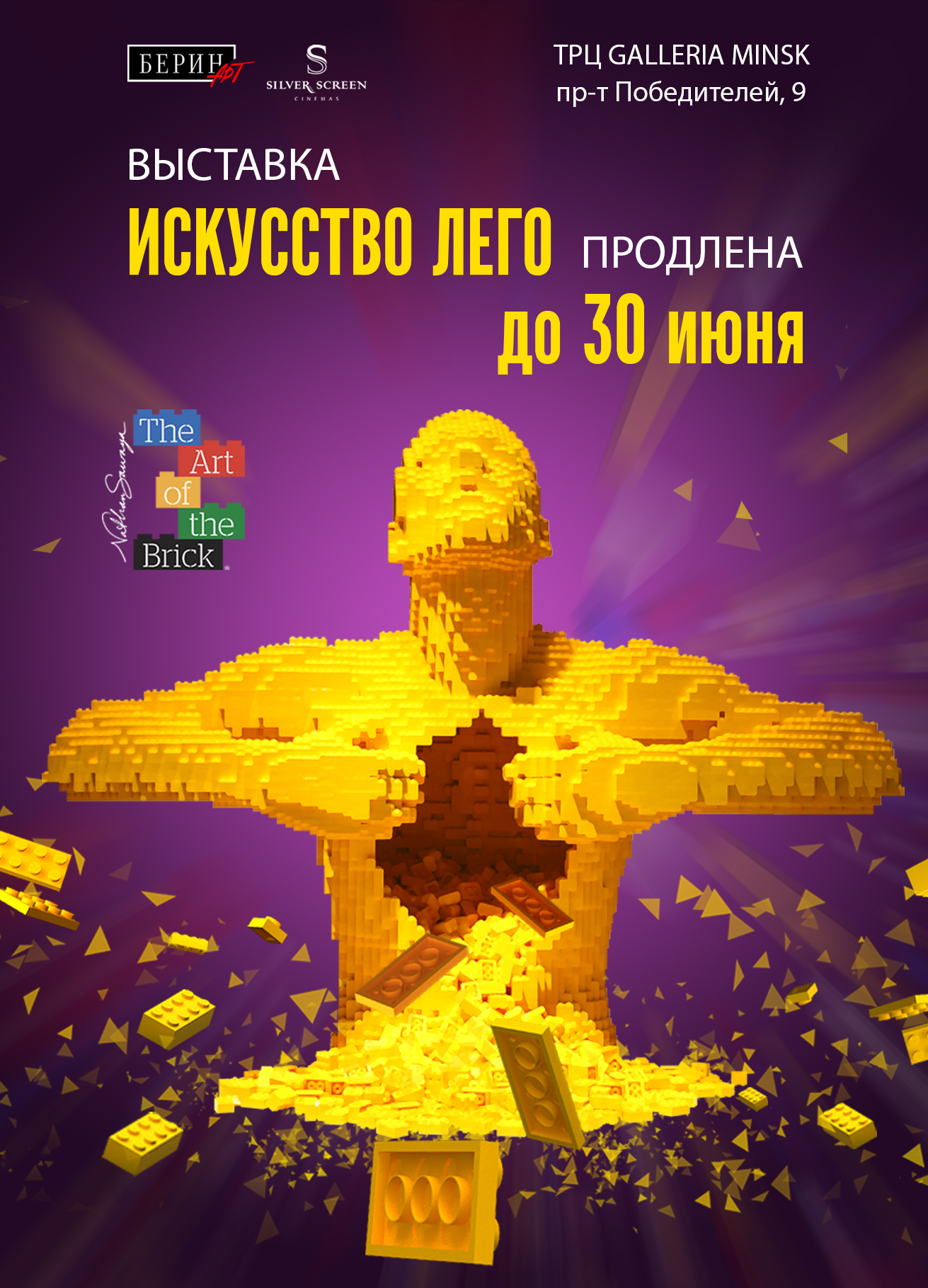 Однако первым, кто показал всем, что Лего это не только игрушка, стал художник из США Натан Савайя. Он настолько увлекся складыванием кубиков, что превратил их в настоящие арт-объекты невероятной сложности. Сегодня сотня масштабных скульптур собрана в одной выставке, известной во всех уголках земного шара, «Искусство Лего» (The Art Of The Brick). Впервые в Минске Berin Art и Silver Screen Cinemas представляют новое искусство, в основе которого лежит желание исследовать, фантазировать, изобретать.