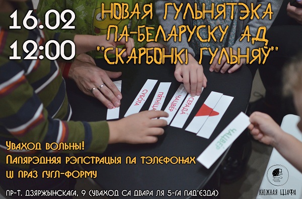 Кніжная Шафа запрашае вас на Гульнятэку па-беларуску ад "Скарбонкі гульняў".