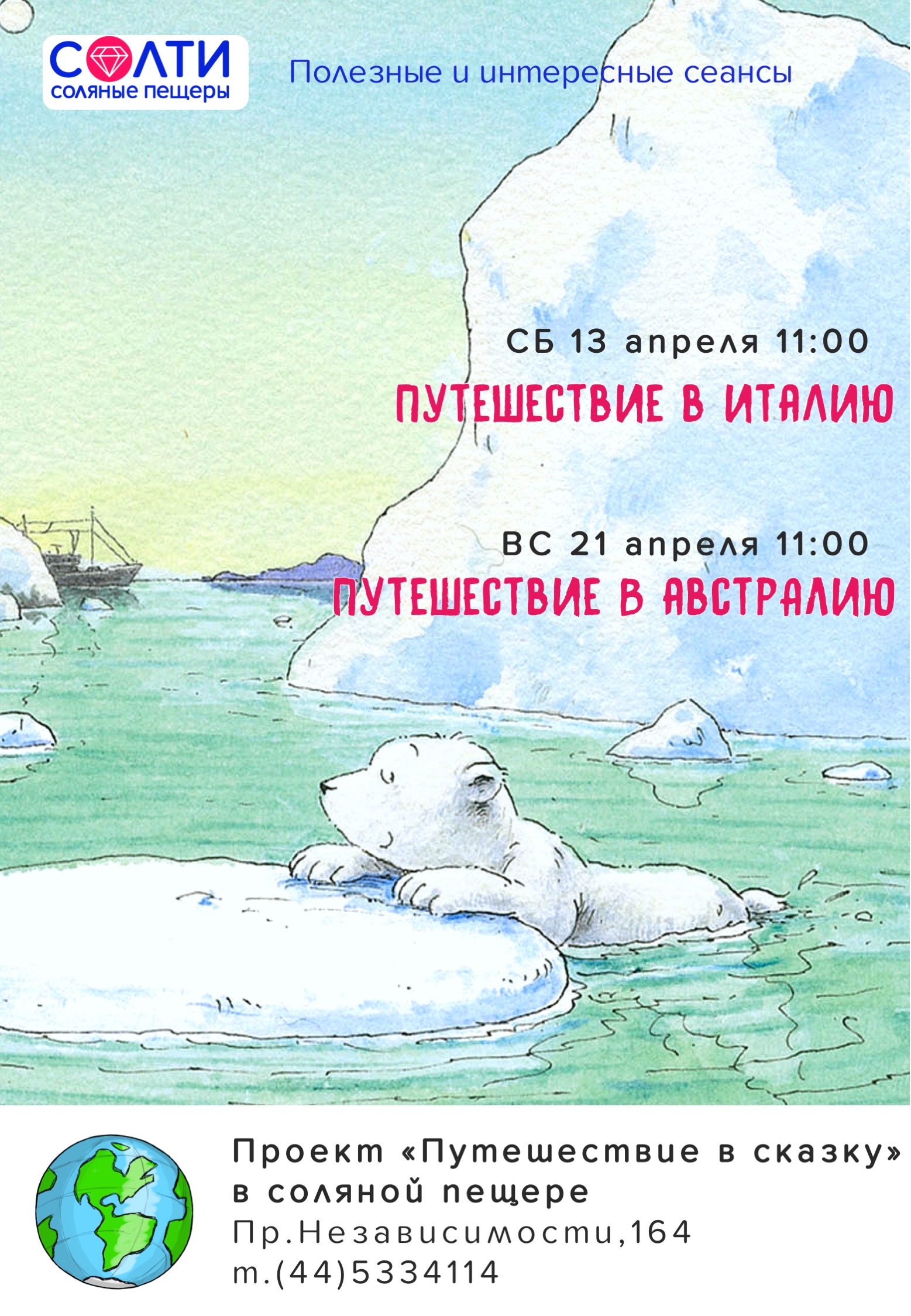 Хотите побывать в стране, где все наоборот? Тогда приходите в соляную пещеру Солти на встречу со сказочницей Татьяной. Когда у нас зима, в Австралии все загорают на пляже. Представляете? Это потому что страна находится в южном полушарии.