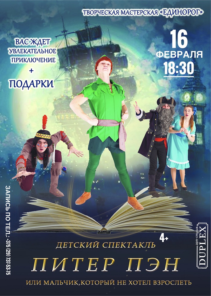Национальный центр современных искусств и мастерская «Единорог» приглашает на детский спектакль «Питер Пэн или мальчик, который не хотел взрослеть».