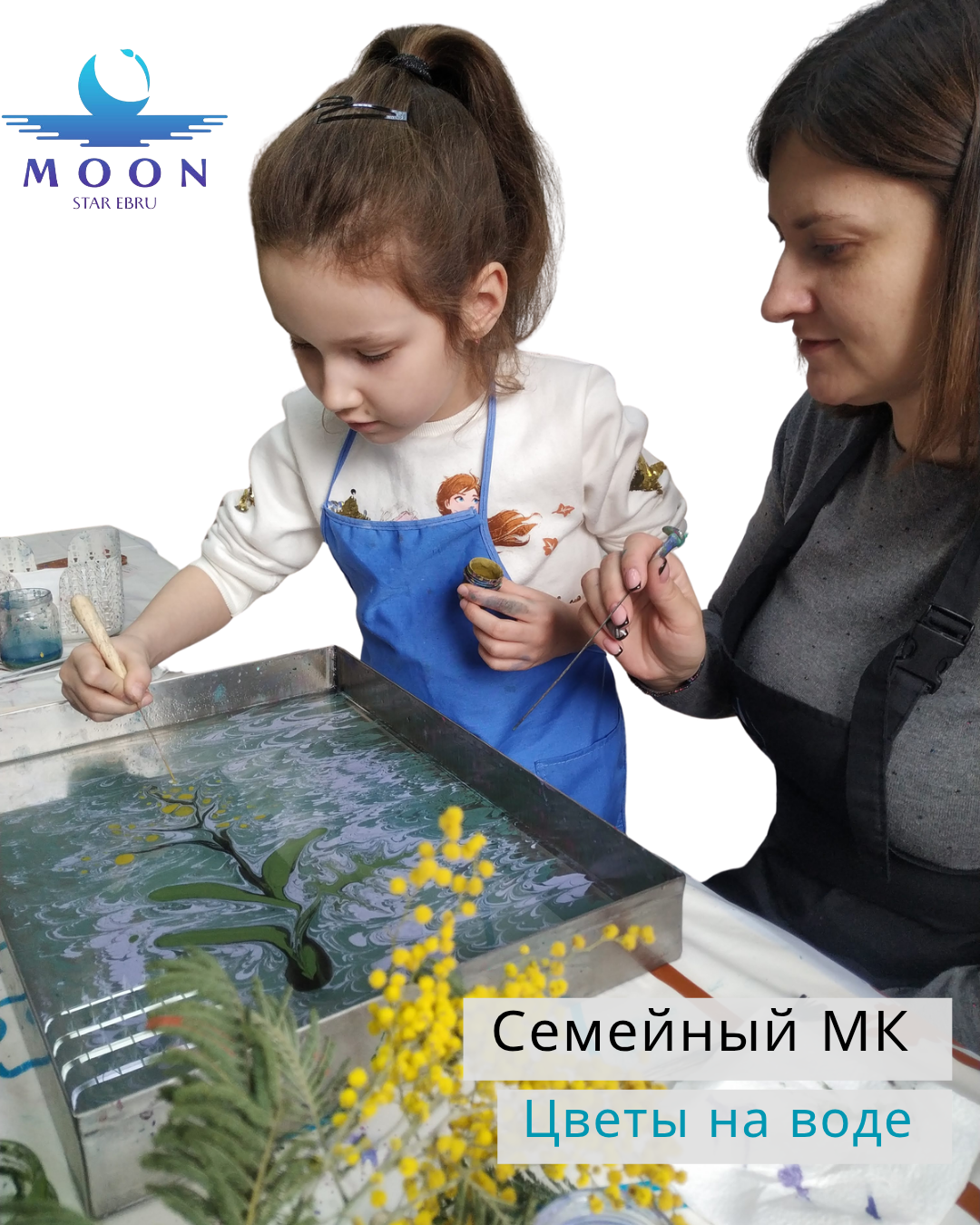 Студия арт-терапии и живописи на воде Moon Star Ebru приглашает детей и мам на семейный мастер-класс по эбру «Цветы на воде». На мастер-классе мы будем рисовать весеннее небо, первоцветы на выбор (подснежники, мимозы, тюльпаны). Вы сможете изобразить абстракцию и стилизованные цветы. Рисунки с воды переносятся на бумагу.