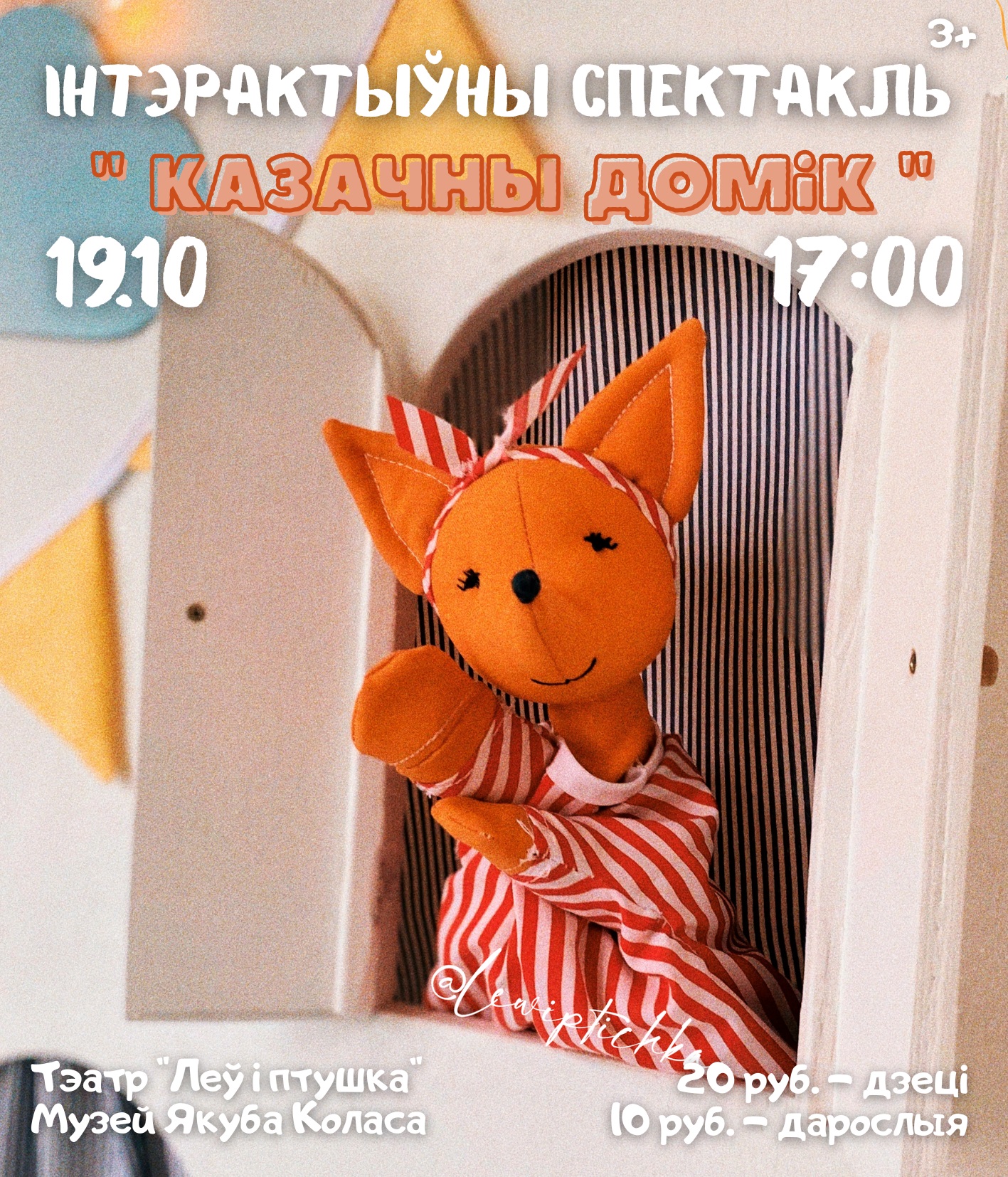У межах тыдня бацькоўскай любові тэатр «Леў і Птушка» Музей Якуба Коласа запрашае маленькіх сяброў у захапляльнае падарожжа ў «Казачны домік» 19 кастрычніка ў 17:00.