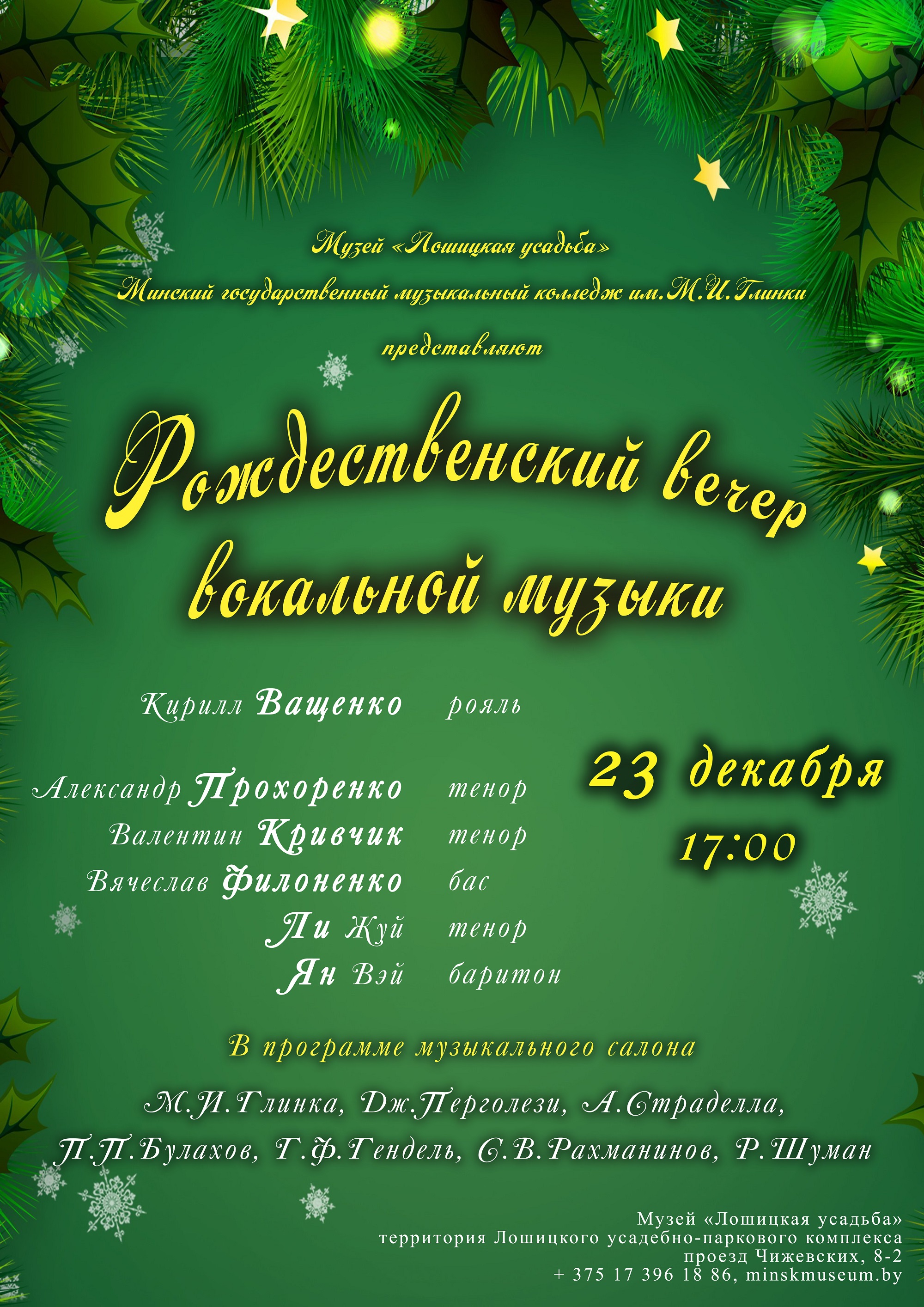 города Минска, приглашает на мероприятие «Рождественский вечер вокальной