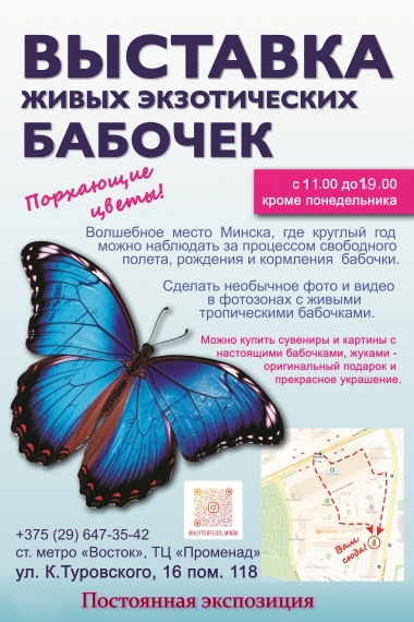 Бабочковая страна - новое волшебное место Минска и единственное место в Беларуси, где круглый год можно увидеть живых тропических бабочек, порхающих вокруг себя. Это разве не чудо!?!
