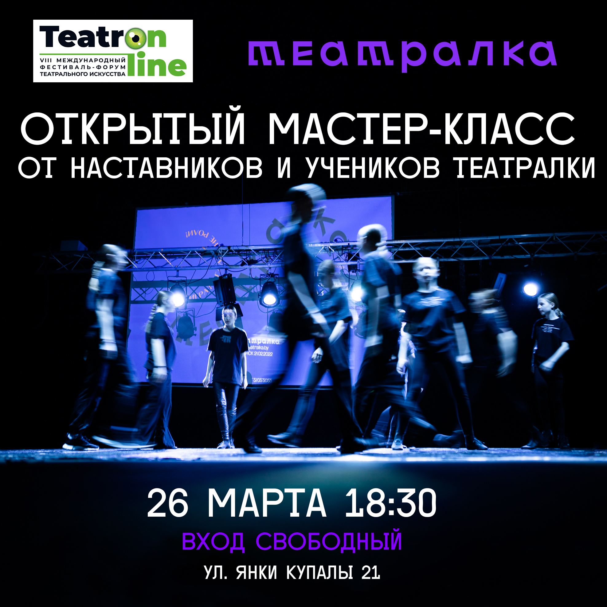 Школа актёрского мастерства для детей "Театралка" в рамках фестиваля «TEATRON-LINE» представит открытый мастер-класс – уникальную тренинговую программу по речи, движению и мастерству актёра с учениками