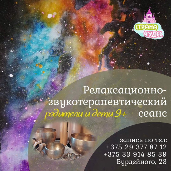 Приглашают детей и взрослых в психологический центр «Страна Чудес» на сеанс релаксации с использованием звукотерапии.