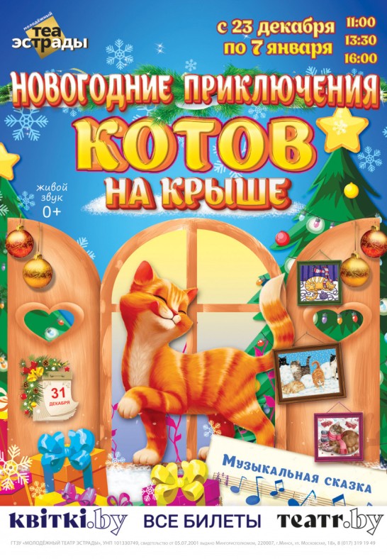 А подарки? Какая радость под новогодней елочкой найти красивую коробку с сюрпризом. Вот и три веселых кота Кекс, Крендель и Касторка решили устроить новогодний праздник на крыше. Да, как полагается, с настоящим новогодним столом с угощениями (им удалось утащить даже огромную сардельку и немного молока!)