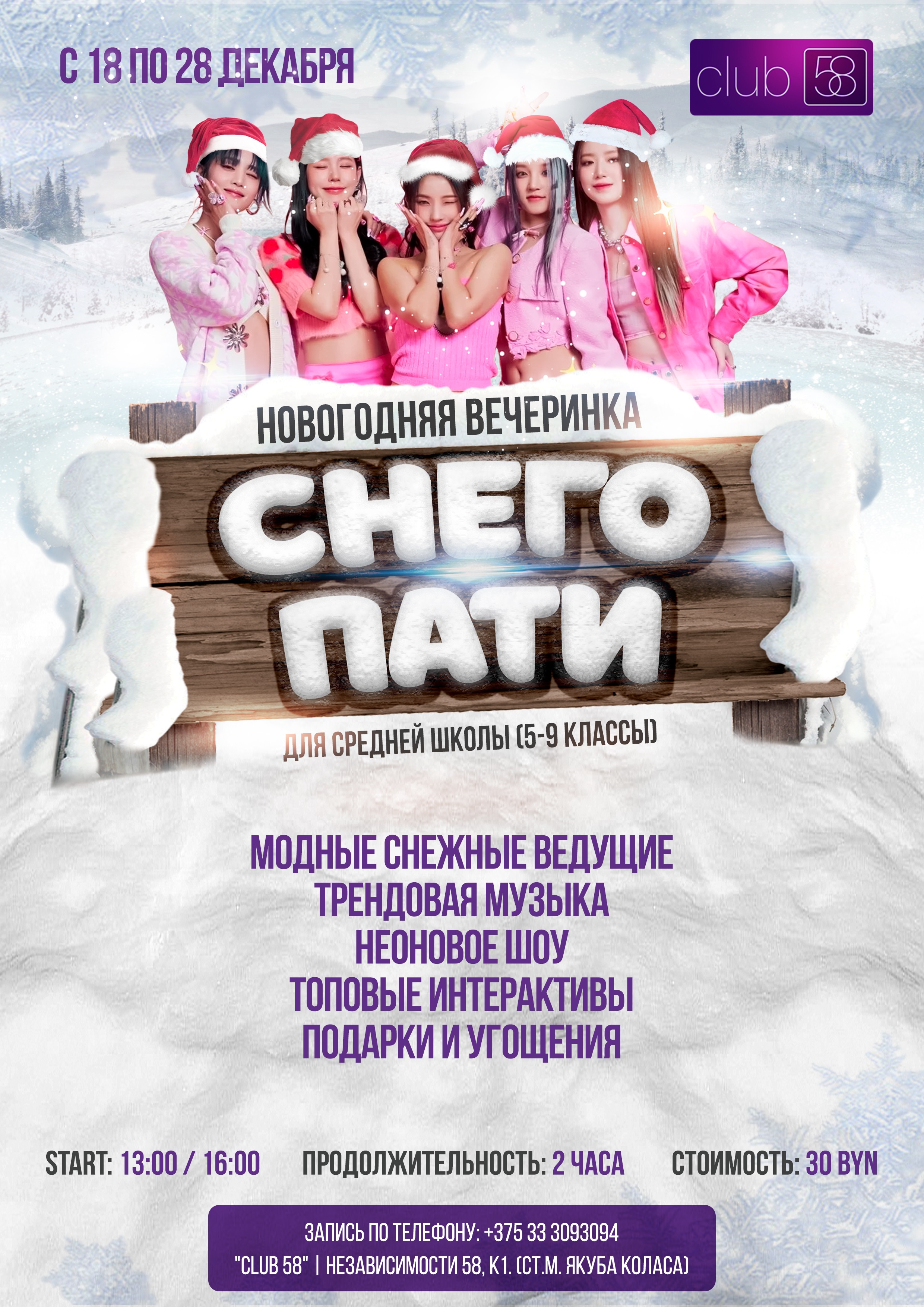 Клуб «Club 58» приглашает на новогодние представления с 18 декабря по 28 декабря!