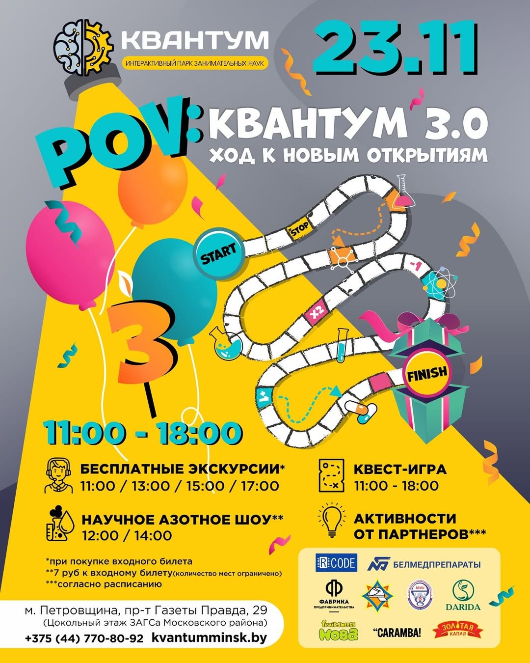 23 ноября Парку наук «Квантум» исполняется 3 года! Это невероятное путешествие в мир знаний, экспериментов и удивительных открытий, которое стало возможным благодаря вам!