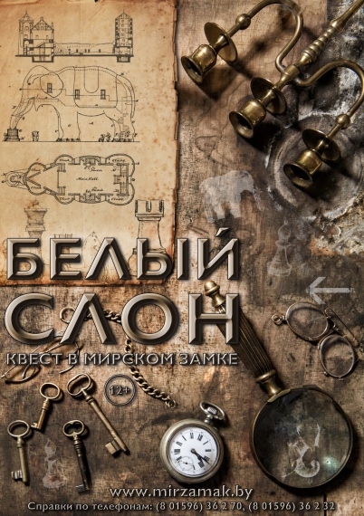 Квест «Белый слон» – очередной эксклюзивный продукт Мирского замка, который, наверняка, придется по вкусу любителям тайн и загадок. Почти 100 лет Мирский замок хранит историю о Белом Слоне. И вот пришло время приоткрыть завесу тайны и узнать невероятную историю, которая долгое время была забыта. Хранитель Мирского замка приготовил для участников квеста непростые испытания на логику и смекалку и, конечно же, на знание истории. Только пройдя этот нелегкий путь, можно узнать, о каком Белом Слоне идет речь.