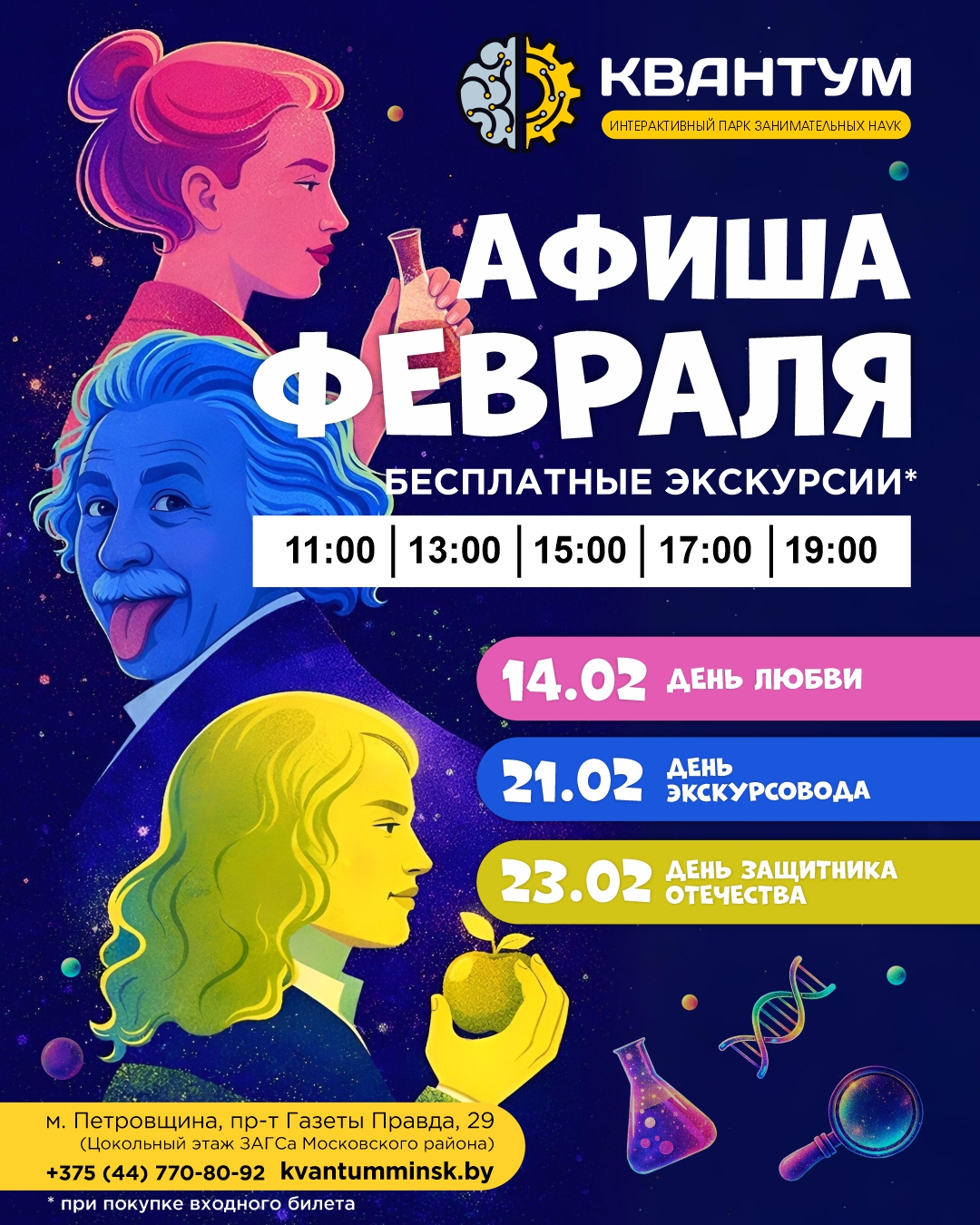 21 февраля — День экскурсовода: в 11:00, 13:00, 15:00, 17:00, 19:00