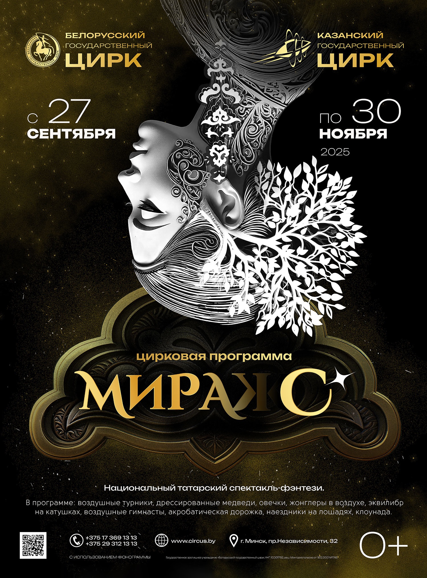 Совместный проект Белорусского государственного цирка и Казанского государственного цирка — цирковой фэнтези-спектакль «Мирас»! «Мирас» — это рассказ о богатой культуре татарского народа красочным языком циркового искусства с использованием современных технологий.