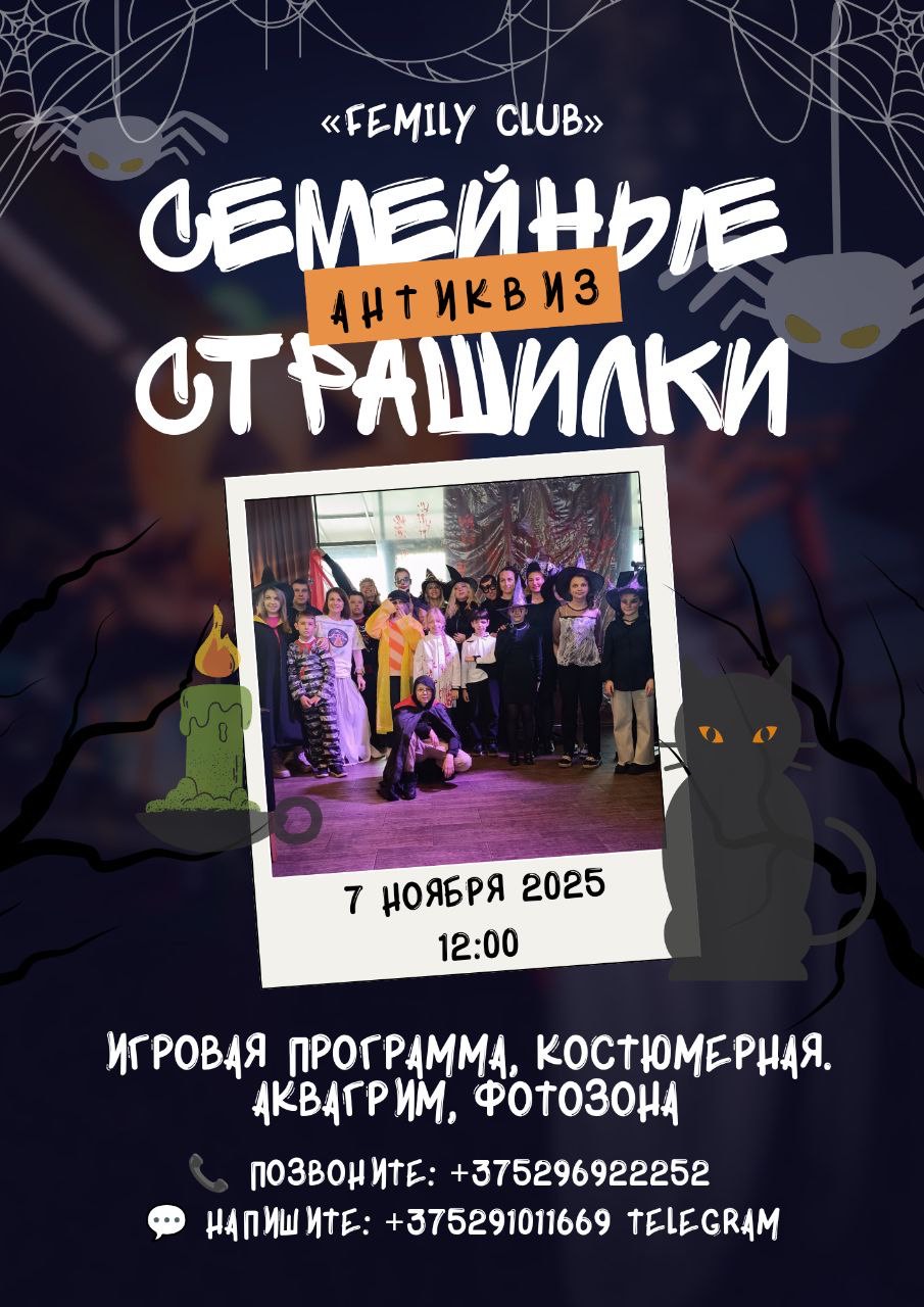 Готовы погрузиться в мир кошмарных, но увлекательных игр. Кто лучший знаток ужасных ответов? Сколько страшных фактов вспомните за минуту? Приглашают на антиквиз «Семейные страшилки» — проверим вашу смекалку, «кошмарные» знания и готовность к весело-жутким семейным приключениям!