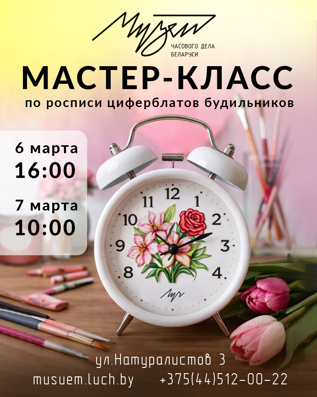 В преддверии 8 марта приглашают на тёплый творческий мастер‑класс по росписи циферблатов будильников — повод провести время красиво, вдохновиться и создать вещь, которая будет радовать вас долгие годы.