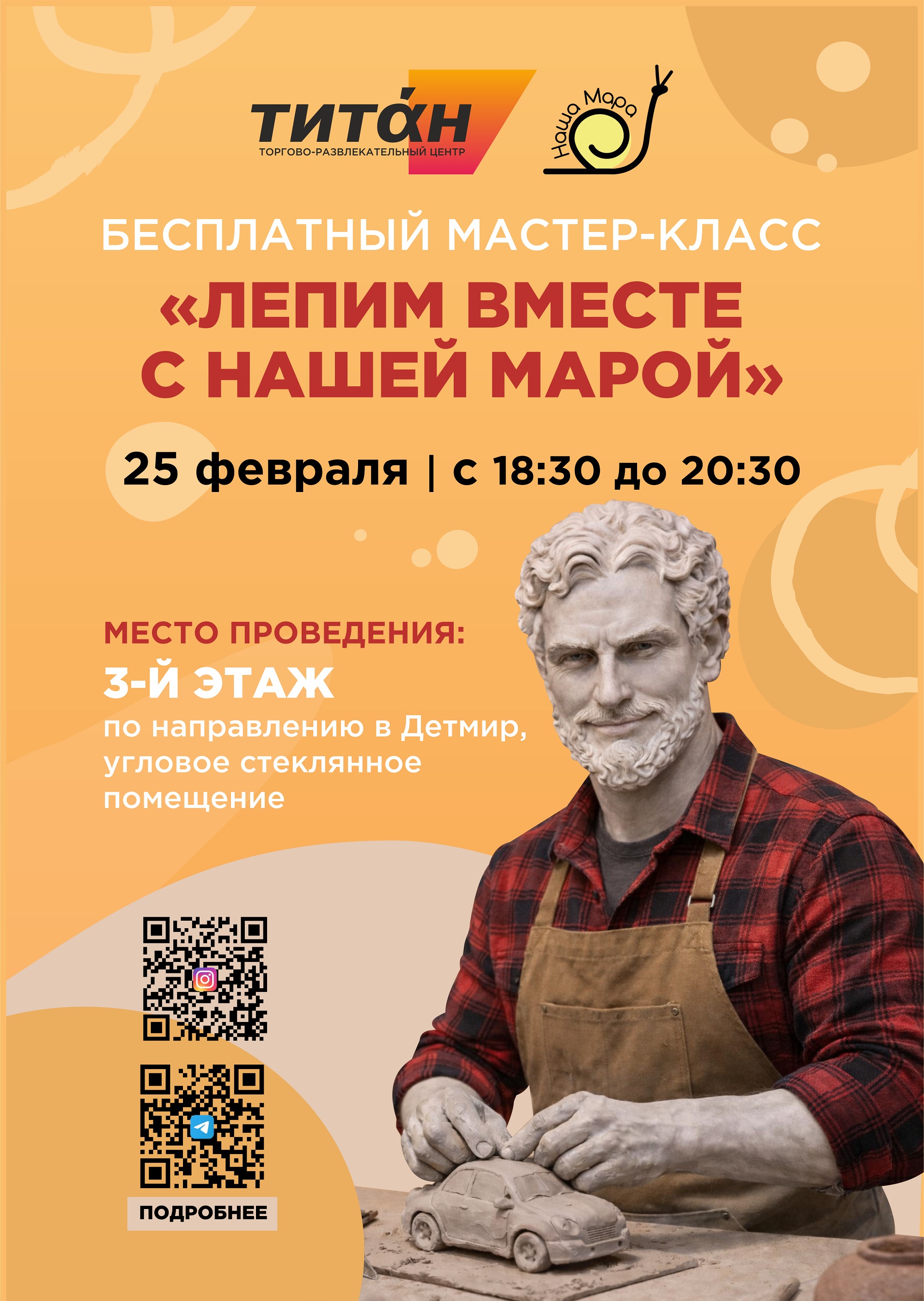 Хотите провести вечер с пользой и вдохновением? 25 февраля ТРЦ Титан приглашает вас на бесплатном мастер-классе по лепке из глины — «Лепим вместе с Нашей Марой».