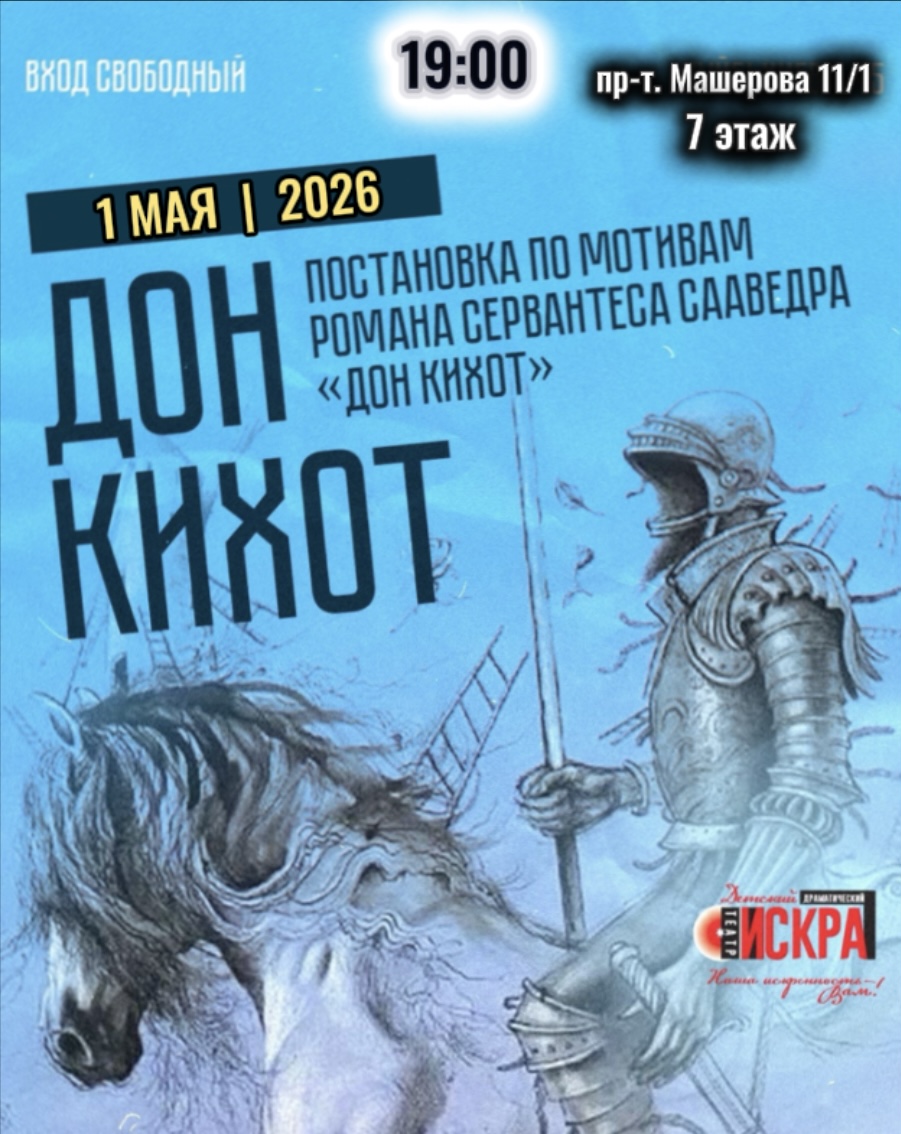Театр-студия «ИСКРА» приглашает на спектакль «ДОН КИХОТ» по мотивам пьес М . Булгакова и Е. Шварца.