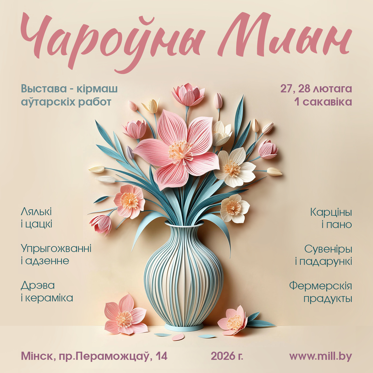 27, 28 лютага і 1 сакавіка запрашаем на выставу-кірмаш вырабаў ручной працы «Чароўны Млын» у Мінску.