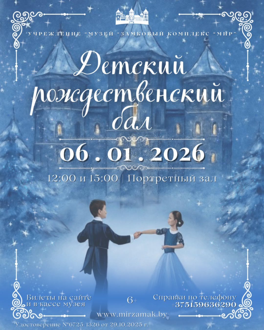 Вот уже который год Мирский замок создает сказку для юных дам и кавалеров, погружая в атмосферу волшебства и магии. И наступающий 2026 – не исключение! Готовы подарить своему ребенку самый волшебный и изящный праздник в атмосфере величия и чуда? 6 января 2026 года в стенах Мирского замка состоится традиционный Детский рождественский бал — событие, которое с нетерпением ждут все дети и их родители!