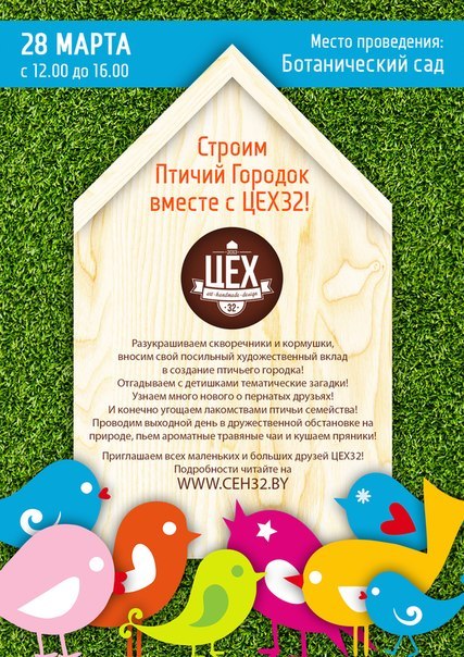 28 марта ЦЕХ32 собирает друзей в Ботаническом саду на мастер-класс «Строим Птичий Городок вместе с ЦЕХ32».