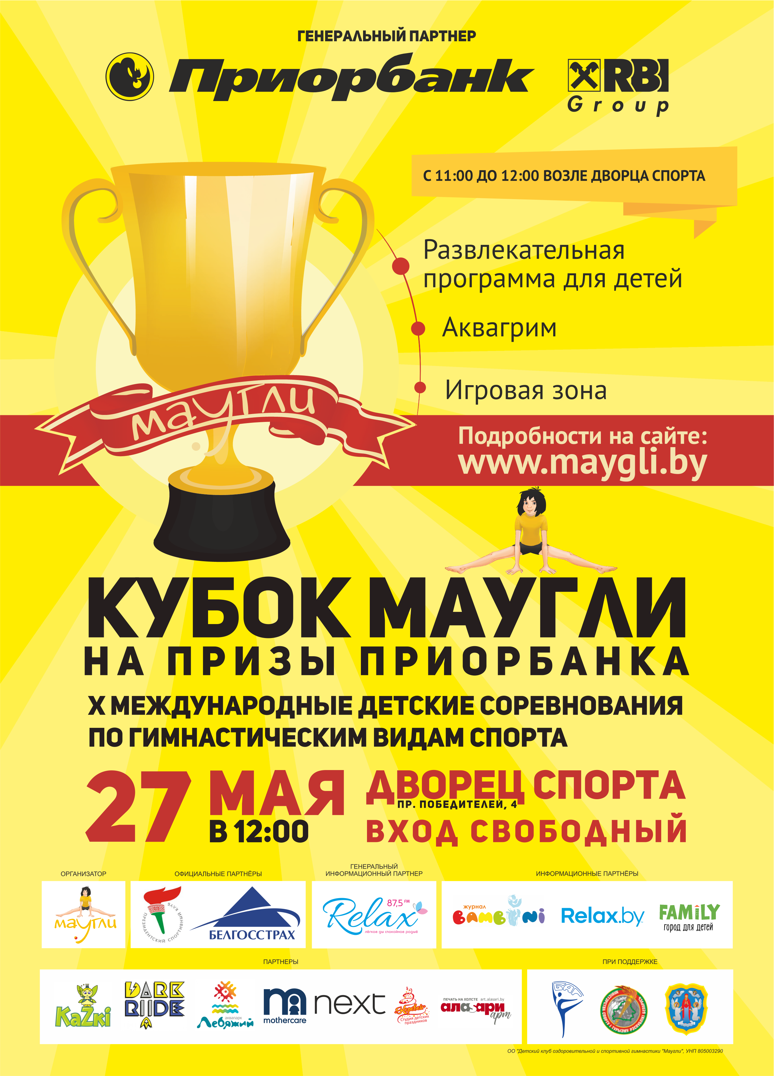 Уже в десятый раз в столице нашей страны Клуб «Маугли» проводит этот зрелищный турнир – настоящий спортивный праздник для детей и их родителей. Ежегодно в нем принимают участие около 300 юных спортсменов, демонстрируя свое мастерство в групповых, парных, сольных и показательных номерах. На этот раз за призовые места будут бороться гимнасты из Бобруйска, Бреста, Гомеля, Гродно, Минска, Санкт-Петербурга и Тбилиси. Генеральным партнером соревнований выступает «Приорбанк».