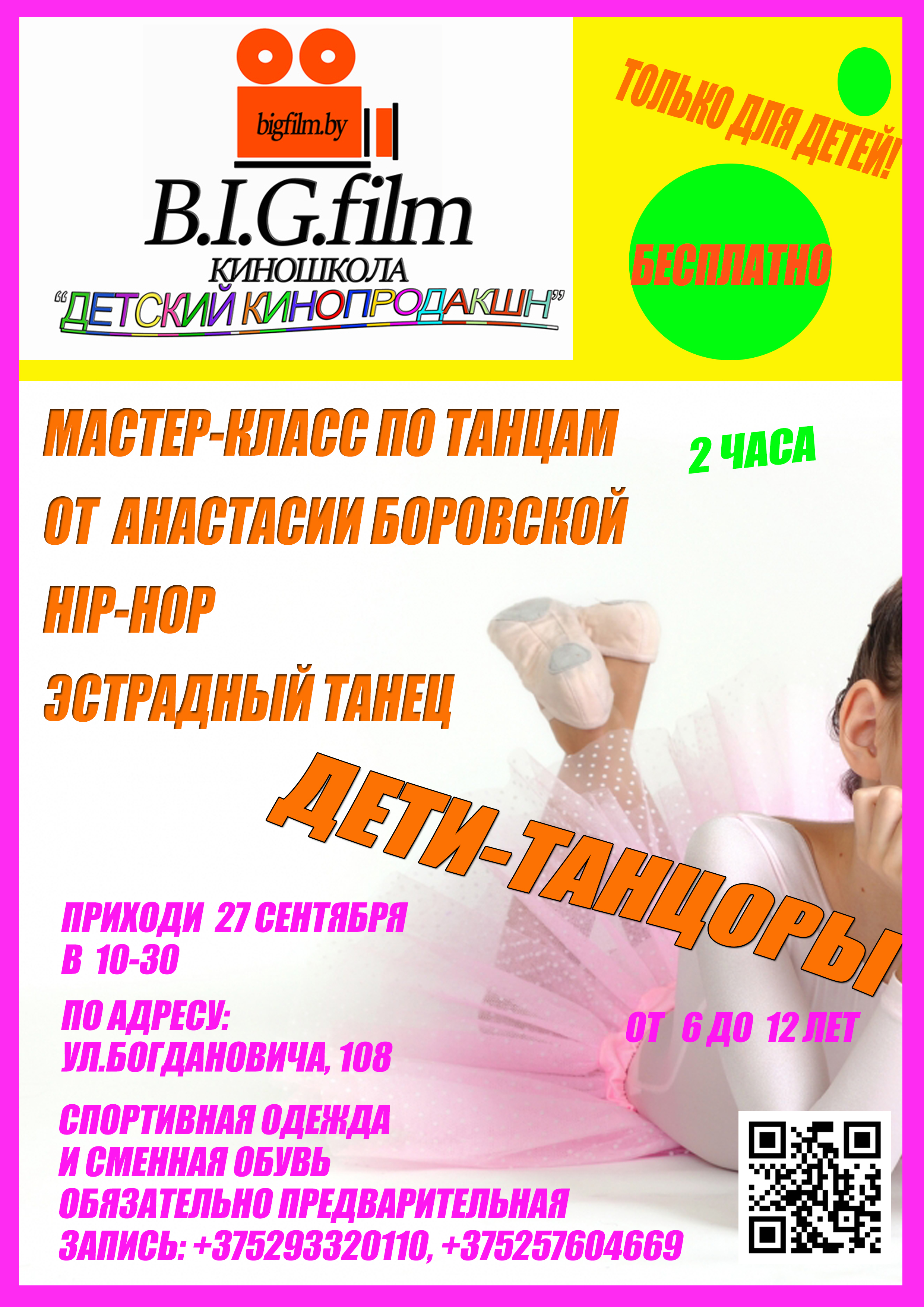 Киношкола «Детский кинопродакшн» приглашает вас и ваших детей в танцевальную группу "Дети-танцоры" на мастер-класс по hip-hop и эстрадному танцу.
