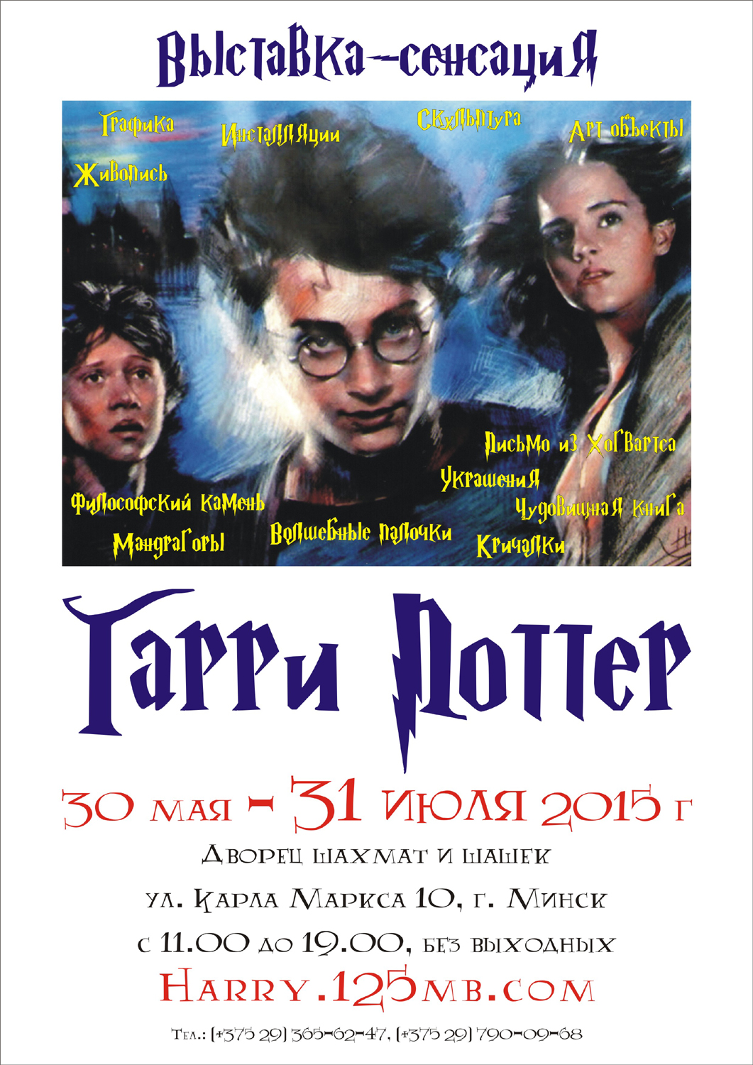 Организаторы продлили захватывающую выставку в мир волшебства «Гарри Поттер». Поколонники творчества Дж. К. Роулинг смогут посмотреть на скульптуры, инсталляции, арт-объекты, декоративные изделия: мандрагоры, волшебные палочки, чудовищная книга, философский камень, письмо из Хогвартса, кричалки, украшения, созданные по мотивам произведений о Гарри Поттере.