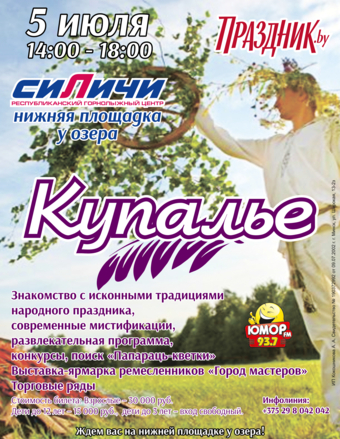 5 июля Республиканский горнолыжный центр «Силичи» приглашает всех на удивительный праздник Купалье, ставший хорошей традицией. Мероприятие будет проходить у озера с 14.00 до 18.00. Гостей комплекса ждут конкурсы, танцы, хорошая музыка и много других развлечений.