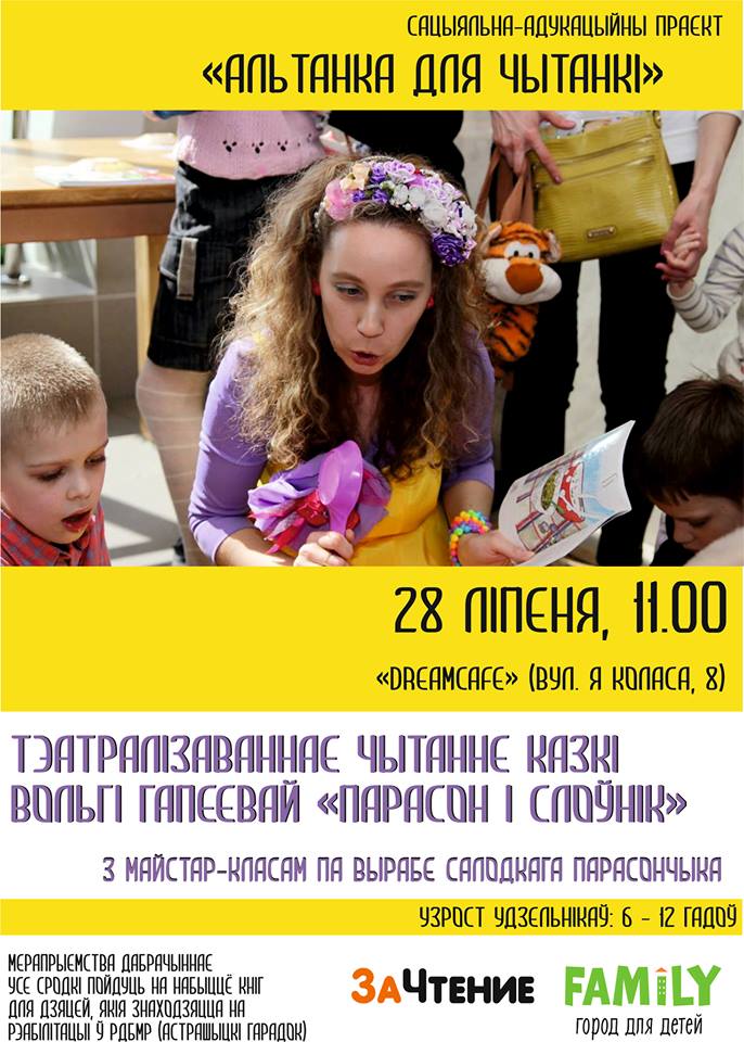 Социально-образовательный проект "Альтанка для чытанки" приглашает всех желающих на театрализованное чтение сказки "Зонтик и Словарь" из книги "Печальный суп" Ольги Гапеевой. Вас ждет встреча с феей Улыбкой и ее таинственным дорожным чемоданом. Один за другим из него появятся герои сказки, каждый из которых поведает свою вам историю.
